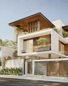 - Biệt thự mini: Thiết kế nhà nhỏ gọn, sang trọng với mái dốc, cửa kính lớn và gam màu trắng, kem, hoặc pastel chủ đạo.