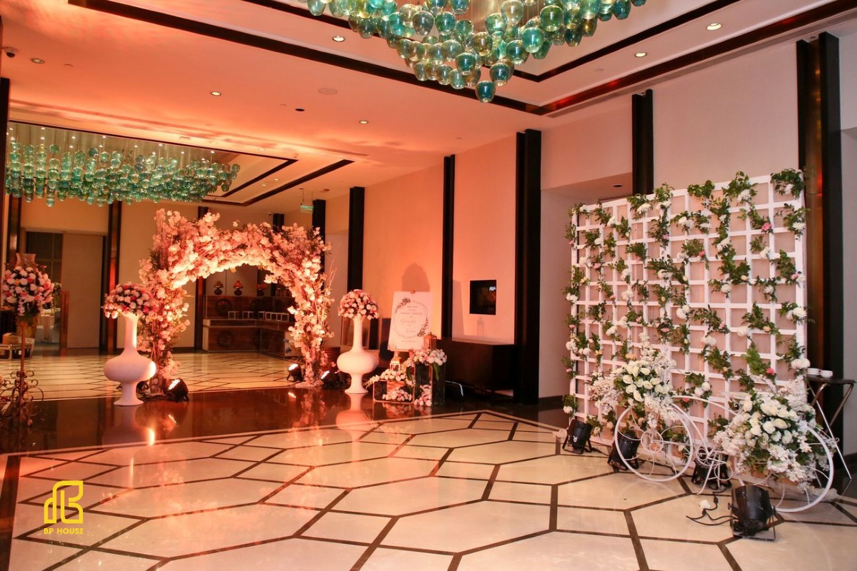 - Sảnh tiệc: Nên có trần cao từ 5m trở lên, sức chứa lớn và thiết kế thông thoáng, tạo sự sang trọng và ấn tượng cho buổi lễ.